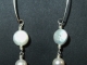 Here we have a trio of Freshwater pearls, found dangling together from the bottoms of two Sterling silver V-Hook earrings. Measuring in at 2.75 inches, these earrings are versitile and can be dressed up or dressed down.