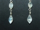 Here we have a Moonstone cabochon, set in a Sterling silver bezel, while a smooth marquise Moonstone briolette is found hanging out below... Rainbow Moonstones are known for the bluish shimmers of light they give off, a natural opalescence common with this stone. Suspended on a pair of Sterling earwires, these measure in at 1.25 inches.
