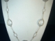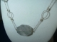 Large faceted freeform nuggets of Smokey quartz and Clear Crystal quartz combine here for another variation of a Stations Necklace. Added to the mix are twisted oval Sterling connectors, just to break up the spans of chain a bit. This necklace comes in at 32 inches in length, and is closed with a Sterling hook type clasp. Matching earrings are also available.