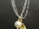 Found freely hanging at the end of this Sterling silver chain you find a single Freshwater pearl, accompanied by a Vermeil accent piece. The Vermeil teardrop has been brushed for texture, and is suspended by a Vermeil wrap. This necklace measures 18 inches and is finished in the back with a Sterling silver lobster claw clasp.