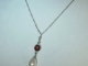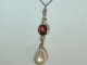 Here we've gone with a checkerboard faceted Garnet in a Sterling silver bezel mount, with a Freshwater teardrop pearl hung below. The focal is 1.5 inches in length, and is suspended from an 18 inch twisted link Sterling chain, finished in the back with a Sterling lobster claw clasp. A AAAll of the silver components have been slightly oxidized for a vintage look.