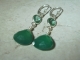 All will be green with envy of these earrings... Deep green Chalcedony heart briolettes hang from faceted Mexican quartz gemstones, set in Sterling silver bezels. They are an intense stone, pale green in color. The earrings are 1.5 inches long and are suspended from Sterling lever back earrings. These earrings can be changed to a standard Sterling earwire upon request.