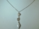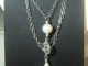 Here is a piece consisting of two Freshwater pearls and a Sterling swirl, hammered for texture. The hammered marks catch the light just enough to give it a little extra shine. The focal measures 1.75 inches and is suspended on an 18 inch sterling chain, finished in the back with a Sterling lobster claw clasp. Matching earrings can be found here.